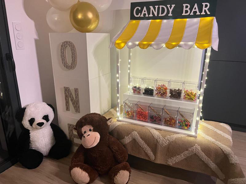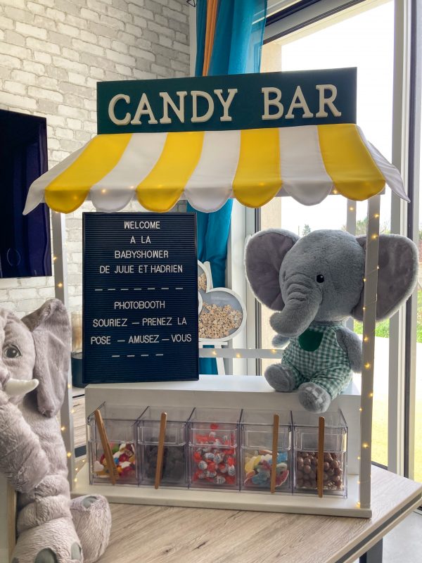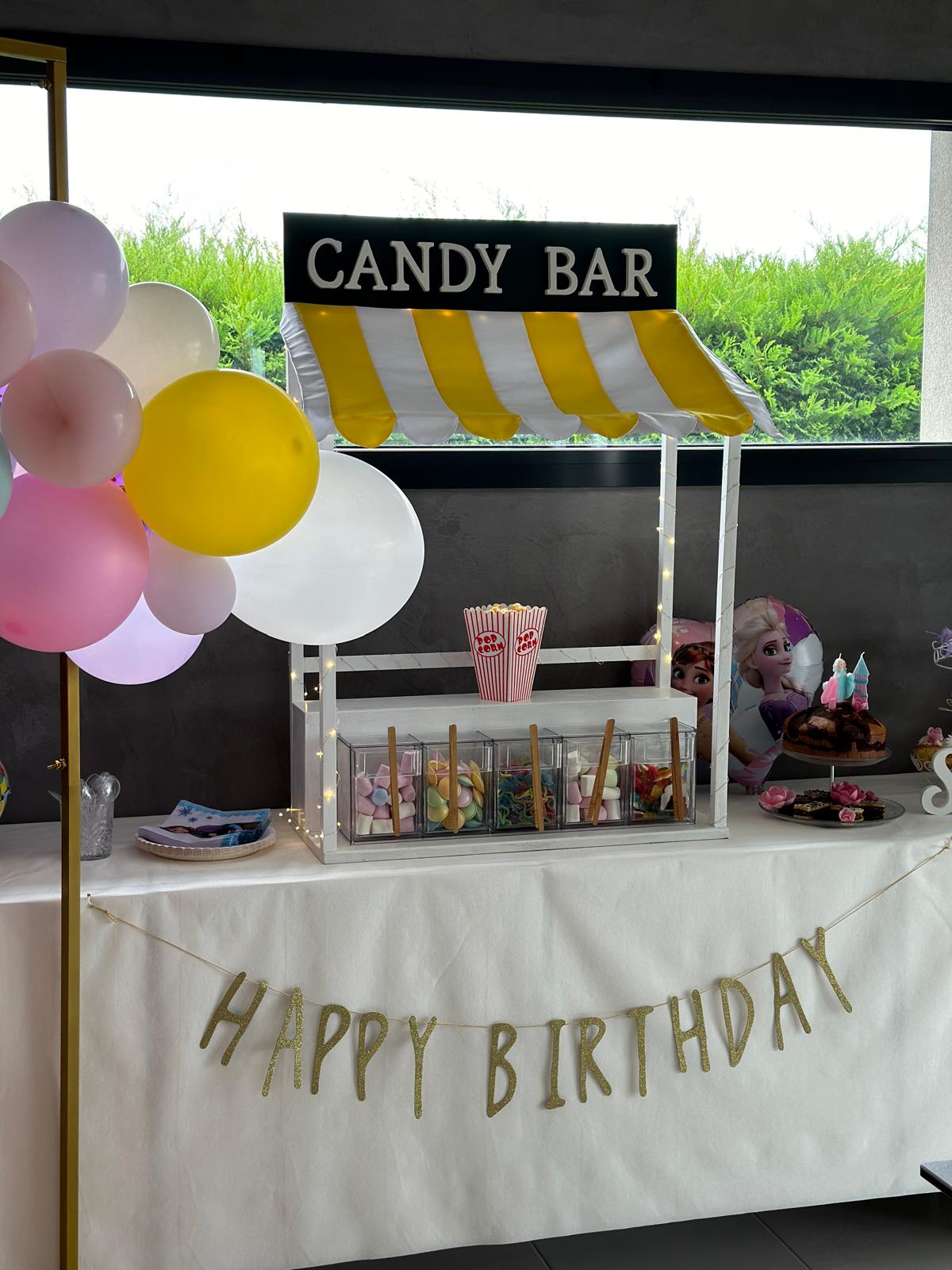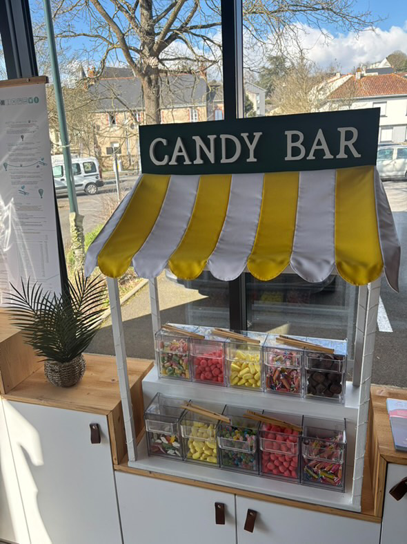 Deux guirlandes led (piles fournies) sont disposées sur les montants du candy bar.