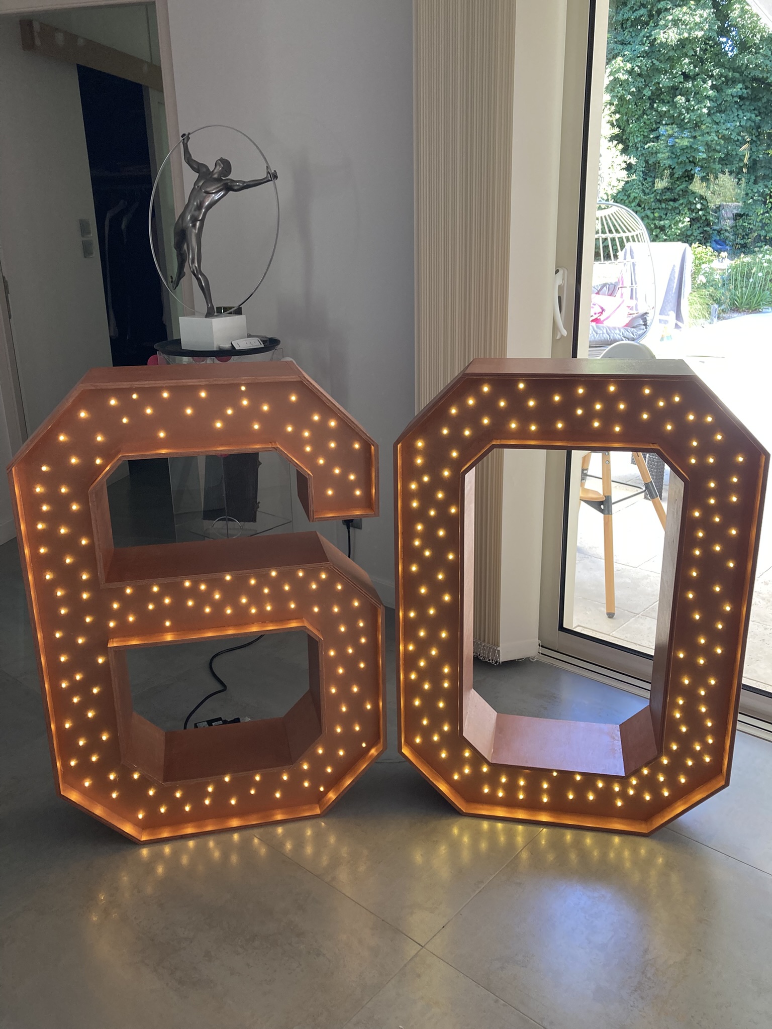 Chaque chiffre est réalisé avec soin et passion par notre artisan menuisier en Loire-Atlantique. Nous utilisons des matériaux de qualité pour garantir une finition impeccable et une longue durée de vie. Ils sont uniques de part leur couleur cuivrée et les 130 LED blanc chaud incrustées dans chacun des chiffres. Les chiffres géants en bois sont facilement transportables pour une manutention optimale.