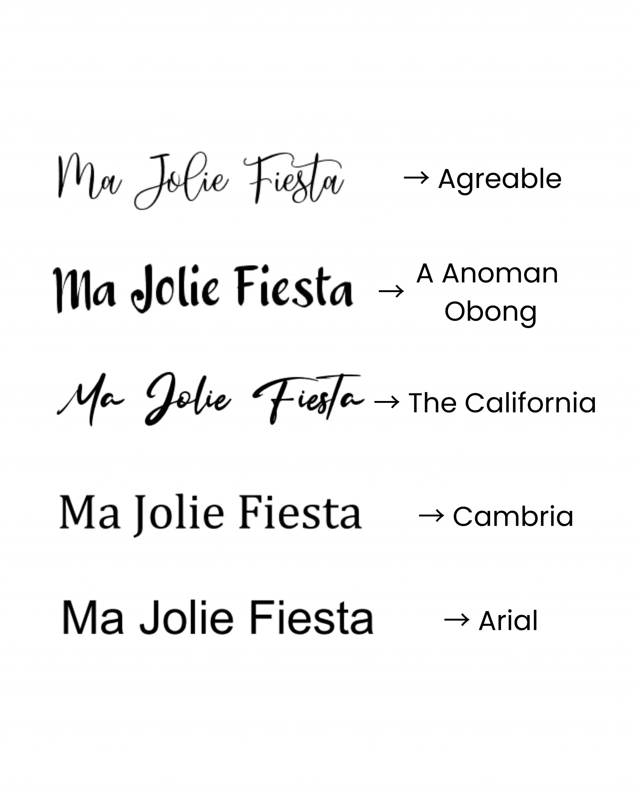 Polices d'écriture disponibles : Arial, Agreable, A Anoman Obong, Cambria, The California